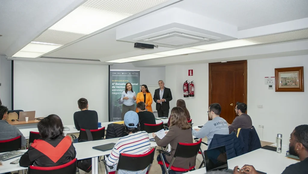 La Fundación Globalcaja HXXII y ESIC Business & Marketing School han dado la bienvenida hoy a los 16 alumnos y alumnas de la 4ª Escuela Regional de Ventas en Ciudad Real, una iniciativa formativa gratuita de alto impacto diseñada para impulsar la empleabilidad de los jóvenes de Castilla-La Mancha inscritos en el Sistema de Garantía Juvenil y fortalecer la competitividad de las empresas de la región. Dori Cañizares, directora de Formación e Innovación de la fundación, y Antonio Salcedo, mánager de Administraciones Públicas de la escuela de negocios, han explicado al alumnado los contenidos y las dinámicas del programa, que cuenta con el apoyo de la Consejería de Educación, Cultura y Deportes del Gobierno regional e integra tendencias avanzadas en comercialización, digitalización, inteligencia artificial e idiomas, además de prácticas en empresas.